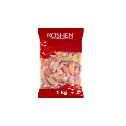 - Contin suc de mere, lamaie, pere, portocale, capsuni si zmeura. Jeleurile Jelly de la Roshen sunt ambalate individual, intr-o punga de 1 kg.