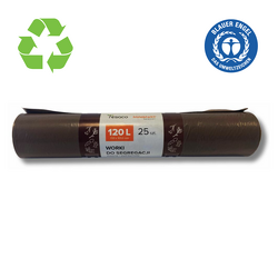 Saci plastic reciclat, standard, 120L, 69x105cm, 35 mic, 25buc/rola, RESACO - maro - deseuri bio