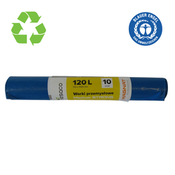 Saci plastic reciclat, rezistenti, 120L, 70x109cm, 47 microni, 10buc/rola, RESACO - albastri