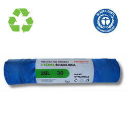 Saci plastic reciclat, standard, 25L, cu snur, 47x52cm, 25 microni, 30buc/rola, RESACO - albastri