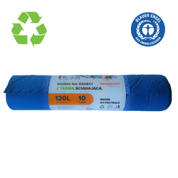 Saci plastic reciclat, standard, 120L, cu snur, 70x100cm, 30 microni, 10buc/rola, RESACO - albastri