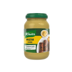 - Knorr Mustar Clasic are gust fin si aroma intensa de mustar. Nelipsit de la mesele de sarbatoare si de la gratare, desavarseste carnea si e o baza perfecta pentru sosuri si dressing-uri. Ingrediente: apa, otet din alcool, seminte de MUsTAR (16,2%), zahar, sare, ulei de floarea soarelui, condimente (seminte de coriandru, curcuma), agent de ingrosare (guma de xanthan), aroma, colorant (caroteni). A se pastra la loc uscat si racoros.