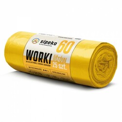 - Saci menajeri rezistenti Sipeko, LDPE, 60L, galbeni. Dimensiune 60 x 72 cm. Grosime 20 microni. Rola cu 25 saci. Potriviti pentru cosuri mari, bucatarie si spatii de lucru. Material LDPE mai elastic, rezista mai bine la greutate si la obiecte cu muchii. Recomandati pentru deseuri medii si grele.