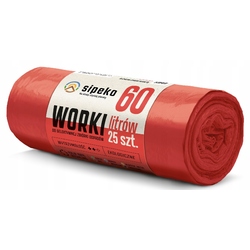 - Saci menajeri rezistenti Sipeko, LDPE, 60L, rosii. Dimensiune 60 x 72 cm. Grosime 20 microni. Rola cu 25 saci. Potriviti pentru cosuri mari, bucatarie si spatii de lucru. Material LDPE mai elastic, rezista mai bine la greutate si la obiecte cu muchii. Recomandati pentru deseuri medii si grele.