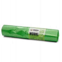 - Saci menajeri extra rezistenti Sipeko, LDPE, 120L, verzi. Dimensiune 70 x 110 cm. Grosime 24 microni. Rola cu 25 saci. Potriviti pentru cosuri si containere mari, depozite si spatii comerciale. Material LDPE elastic, rezista bine la greutate si la obiecte cu muchii. Recomandati pentru deseuri medii si grele.