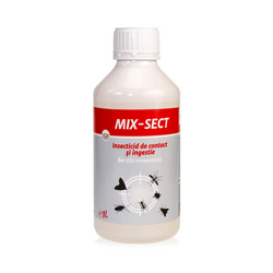 - MIX-SECT este un insecticid de contact, sub forma de lichid concentrat, destinat combaterii insectelor zburatoare (muste, tantari, molii, viespi) si taratoare (capuse, furnici, purici, gandaci, plosnite) din spatii interioare si exterioare publice sau private. Nu se aplica pe alimente sau suprafete ce intra direct in contact cu acestea. Produsul are eficienta ridicata in eliminarea surselor de infestare.