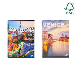 • Caiete A4 cu spirală, cu imagini spectaculoase din marile orașe ale lumii, perfecte pentru școală sau birou.