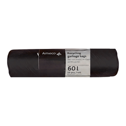 Saci plastic reciclabil, standard, 60L, 60x72cm, 20 microni, 10buc/rola, Ameco - negri