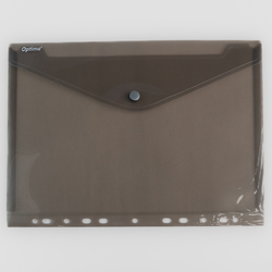 Folie protectie doc. A4, clapa laterala, inchidere cu capsa, 4/set, 200 microni, Optima -fumuriu *