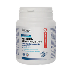 • Klintensiv® Klinochlor Tabs este un dezinfectant solid, TP 4, sub forma de tablete efervescente, ideal pentru dezinfectarea eficienta a suprafetelor dure, pavimentelor, ustensilelor, veselei si materialelor din industriile alimentara, HoReCa. Formulat pe baza de clor activ cu eficienta certificata, produsul combate un spectru extins de microorganisme: bacterii, fungi, levuri, virusuri, micobacterii si spori.