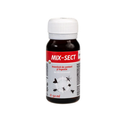 - MIX-SECT este un insecticid de contact, sub forma de lichid concentrat, destinat combaterii insectelor zburatoare (muste, tantari, molii, viespi) si taratoare (capuse, furnici, purici, gandaci, plosnite) din spatii interioare si exterioare publice sau private. Nu se aplica pe alimente sau suprafete ce intra direct in contact cu acestea. Produsul are eficienta ridicata in eliminarea surselor de infestare.